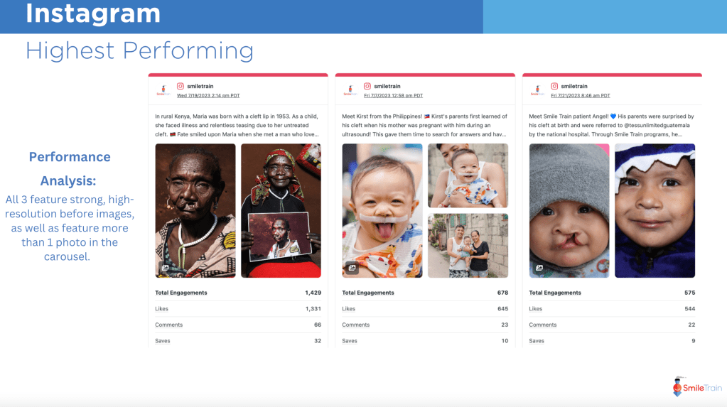 Smile Train – Global Social Media Report This is an example of Smile Train’s monthly social report that I developed. Please click on the Global Social Media Report cover page to bring you to a slide show view. Read More Share this: Share on X (Opens in new window) X Share on Facebook (Opens in new window) Facebook Like Loading...